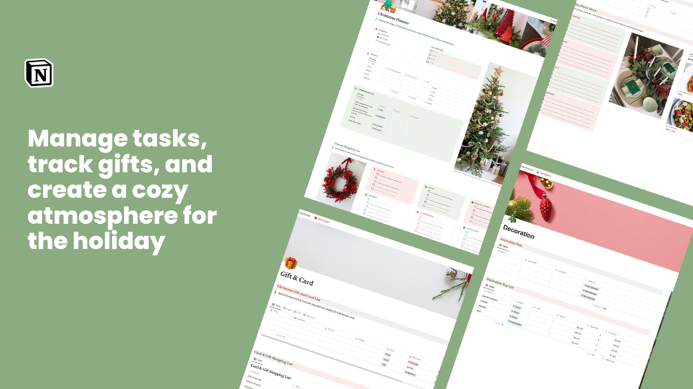 Discover the ultimate tool for turning your holiday season into a seamless and joyous celebration with our Notion Christmas Planner Template! 🎄✨ This meticulously crafted template is designed to bring order and simplicity to your festive preparations, ensuring you can fully embrace the magic of the season.