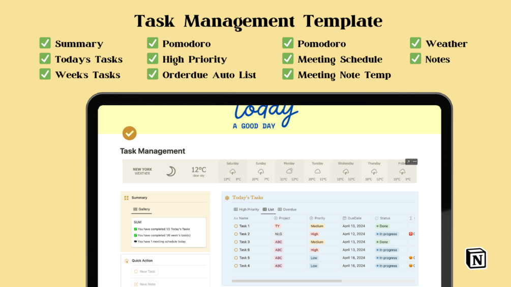 Introducing our comprehensive Task Management Notion template, designed to elevate your productivity and organization to new heights.